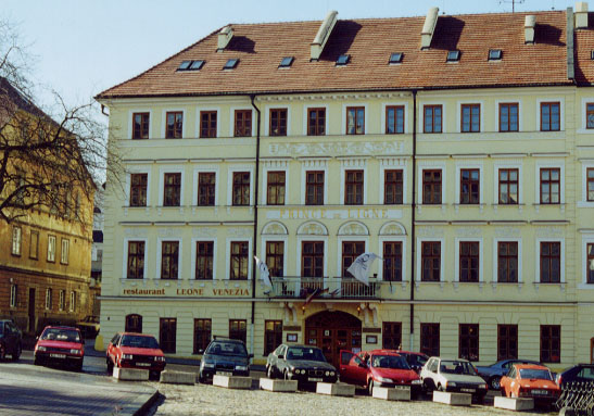 I arrived at the hotel and checked in. The Hotel Prince DeLigne (picture) is a 4 star hotel in Teplice. My room is a single with telephone and satellite television. It overlooks a square with a statue and an old church, along with the Teplice Museum and several shops. After a shower and a change of clothes, I met Mr. Vlk and we traveled to Decin to observe a match between 1985 players.